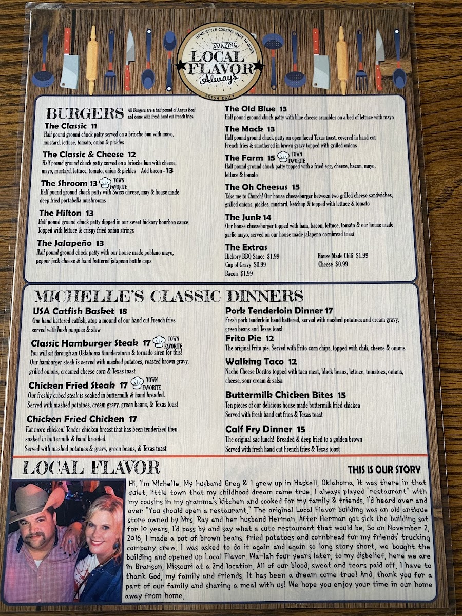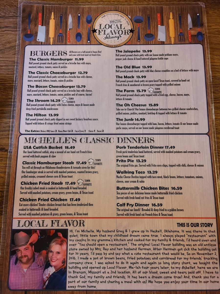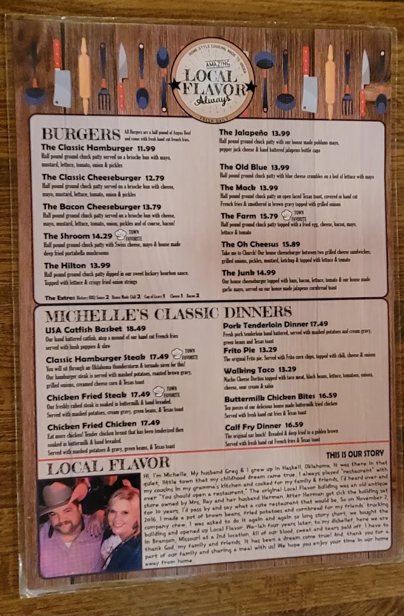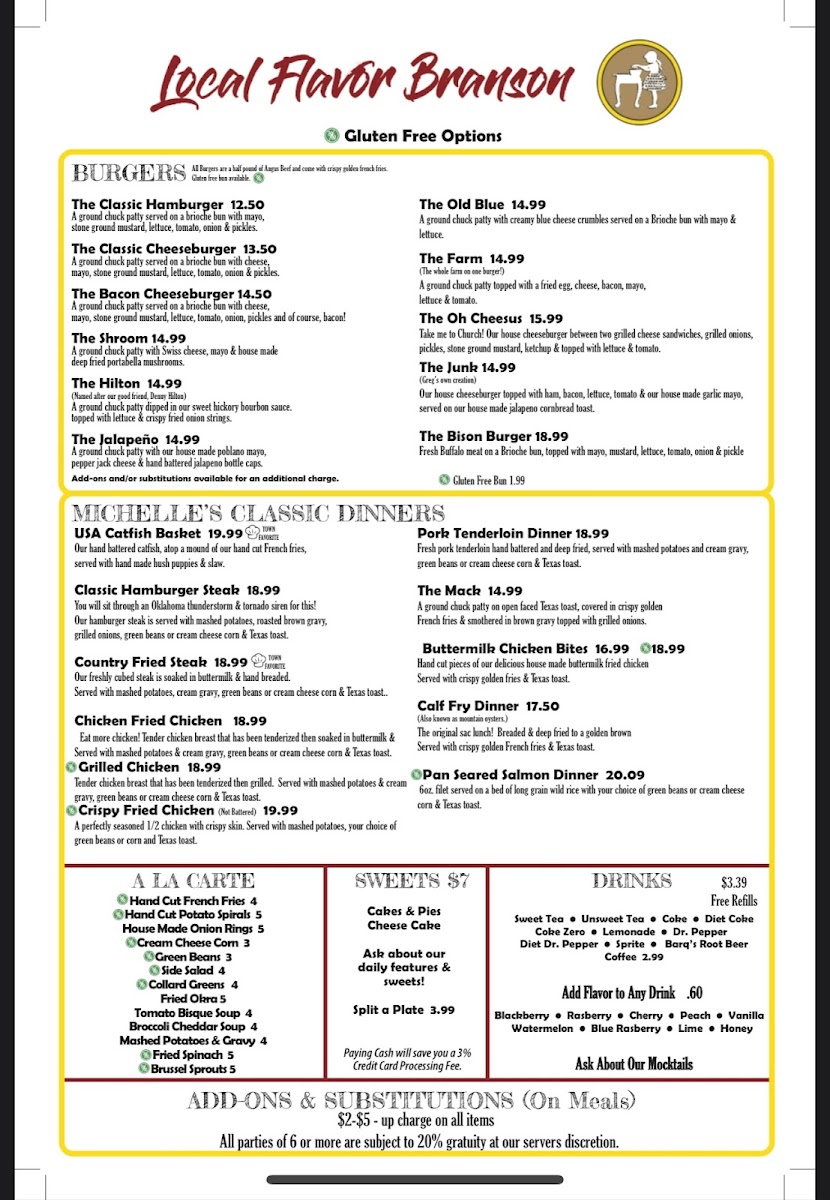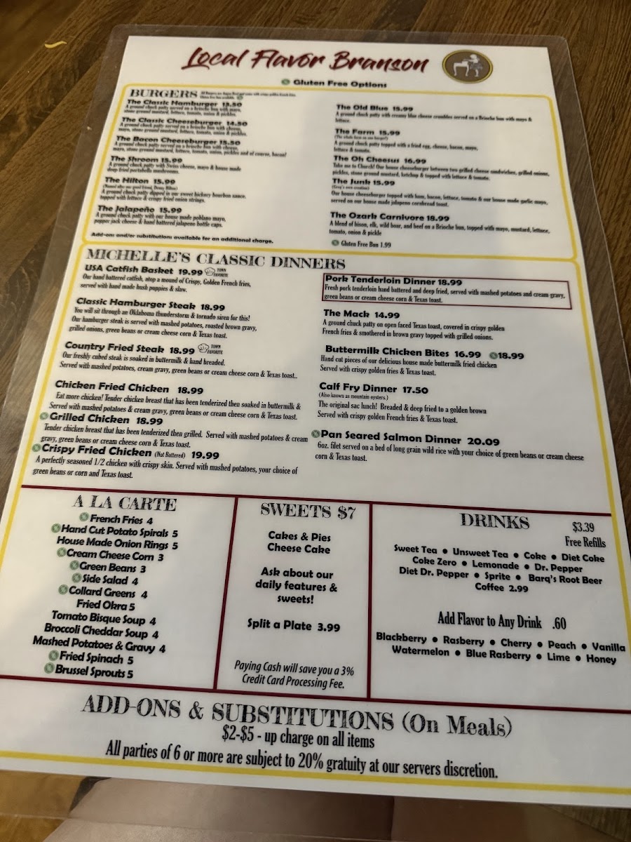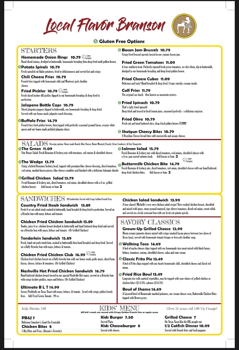 The menu at Local Flavor Branson Menu offers a delightful mix of regional favorites and comfort foods, all served with a touch of local flair. Whether you're in the mood for something hearty like a classic barbecue platter or craving a lighter, fresh salad, there's something here for everyone. The flavors are bold yet comforting, with a focus on fresh, locally sourced ingredients. You’ll find everything from tender meats cooked to perfection to indulgent desserts that make the perfect end to any meal. With every dish, you can taste the passion and care that goes into crafting the perfect plate. The menu invites you to take a delicious journey through the heart of Branson, making each bite a true experience to savor.