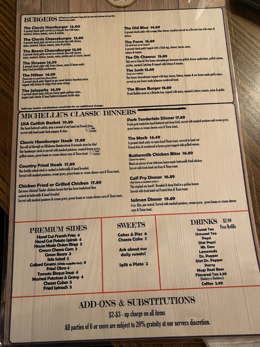 You will sit through an Oklahoma thunderstorm & tornado siren for this! Our hamburger steak is served with mashed potatoes, roasted brown gravy, grilled onions, cream cheese corn and Texas toast.